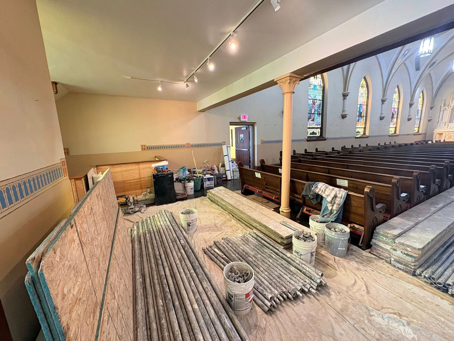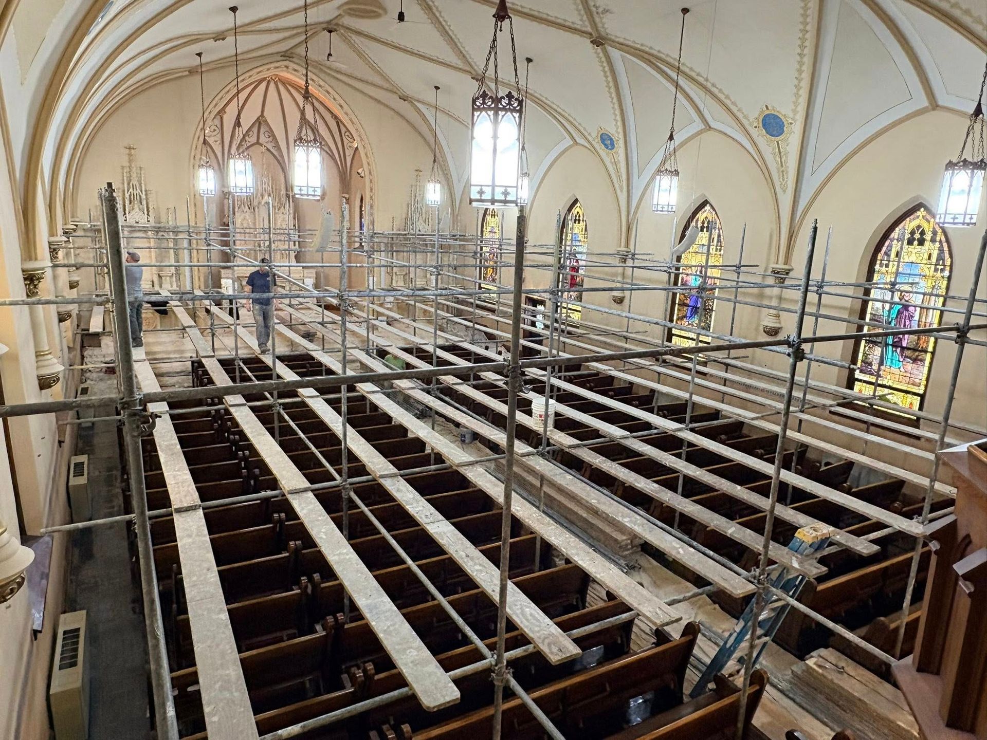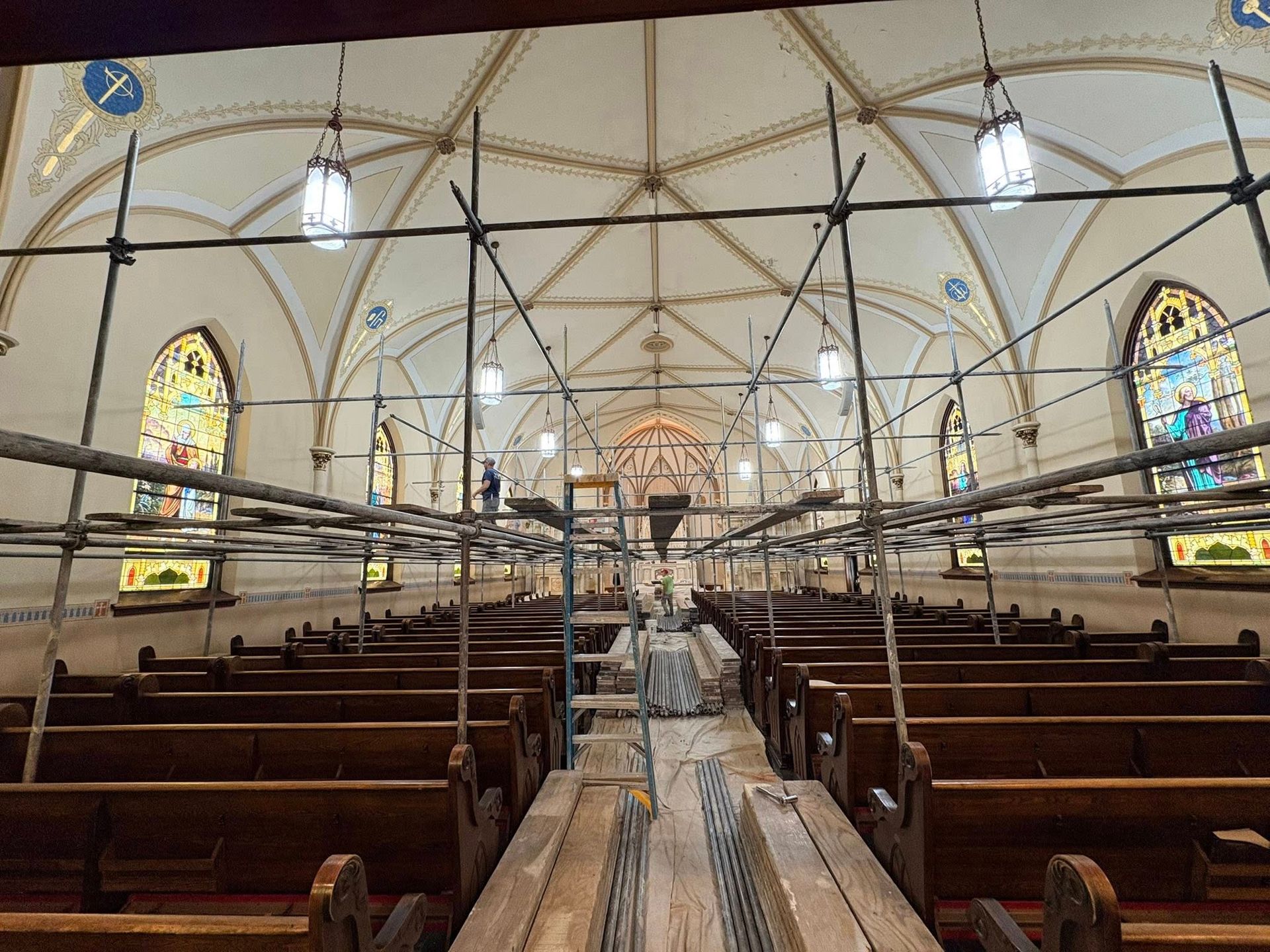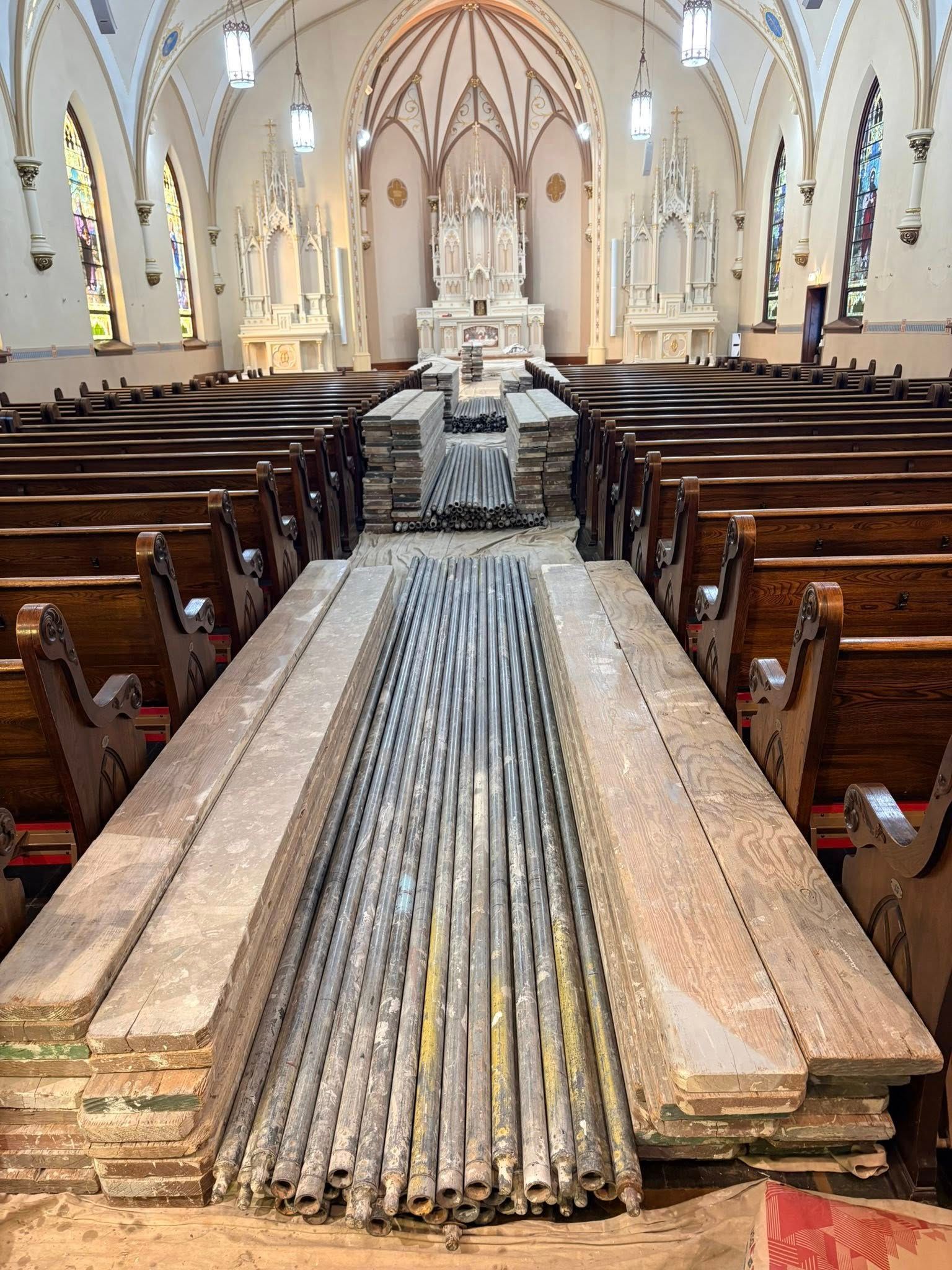 The first church was destroyed by fire on August 15, 1904.
