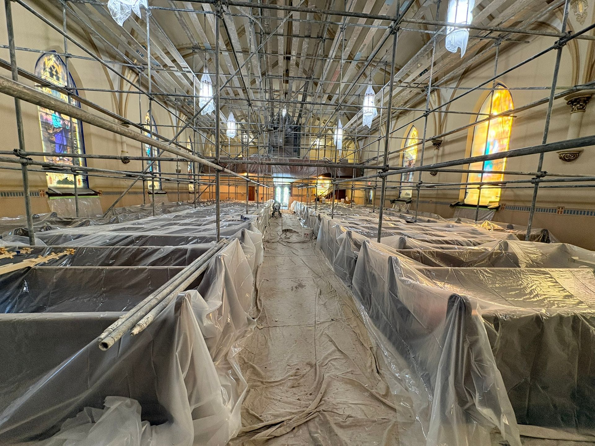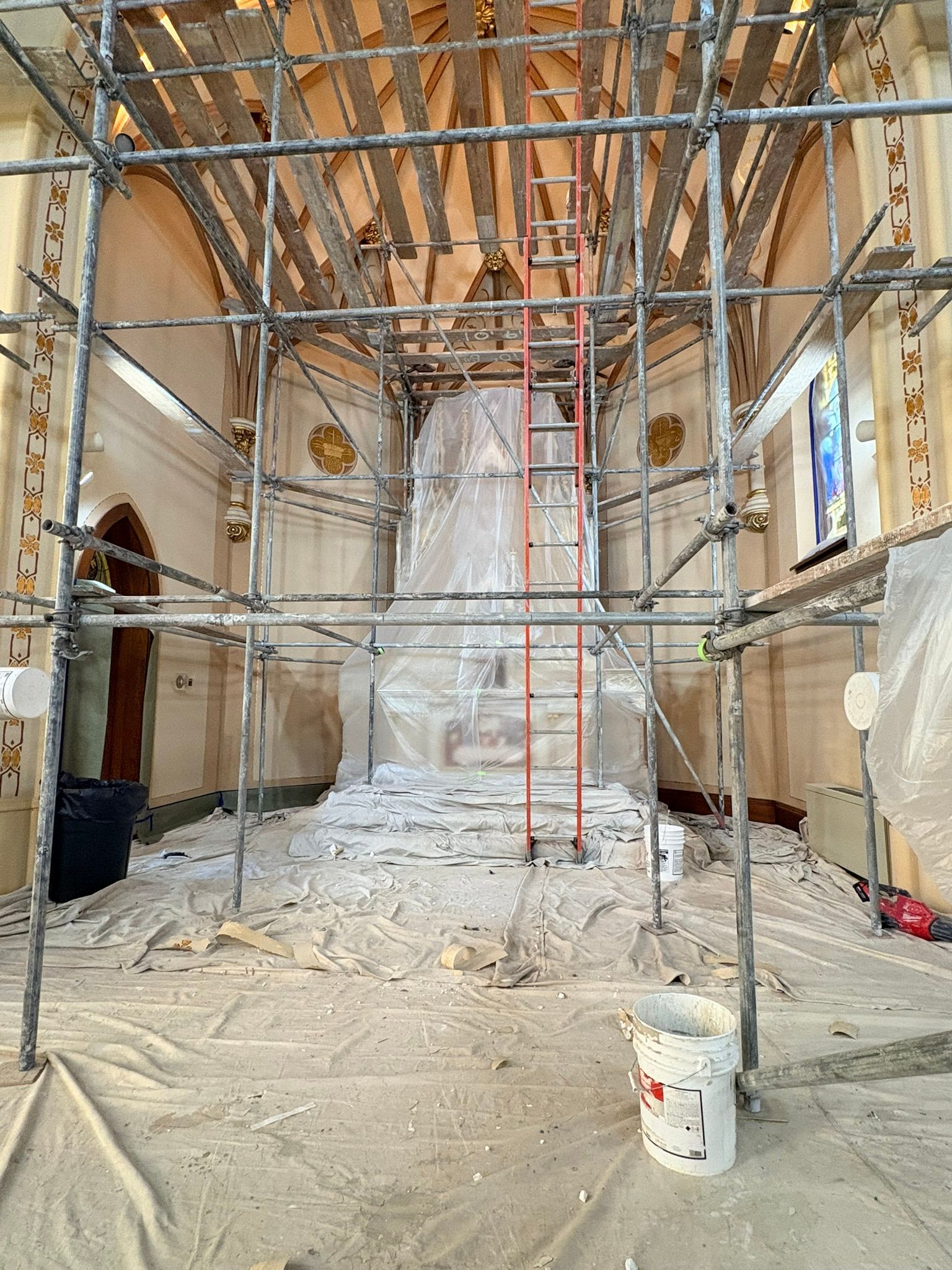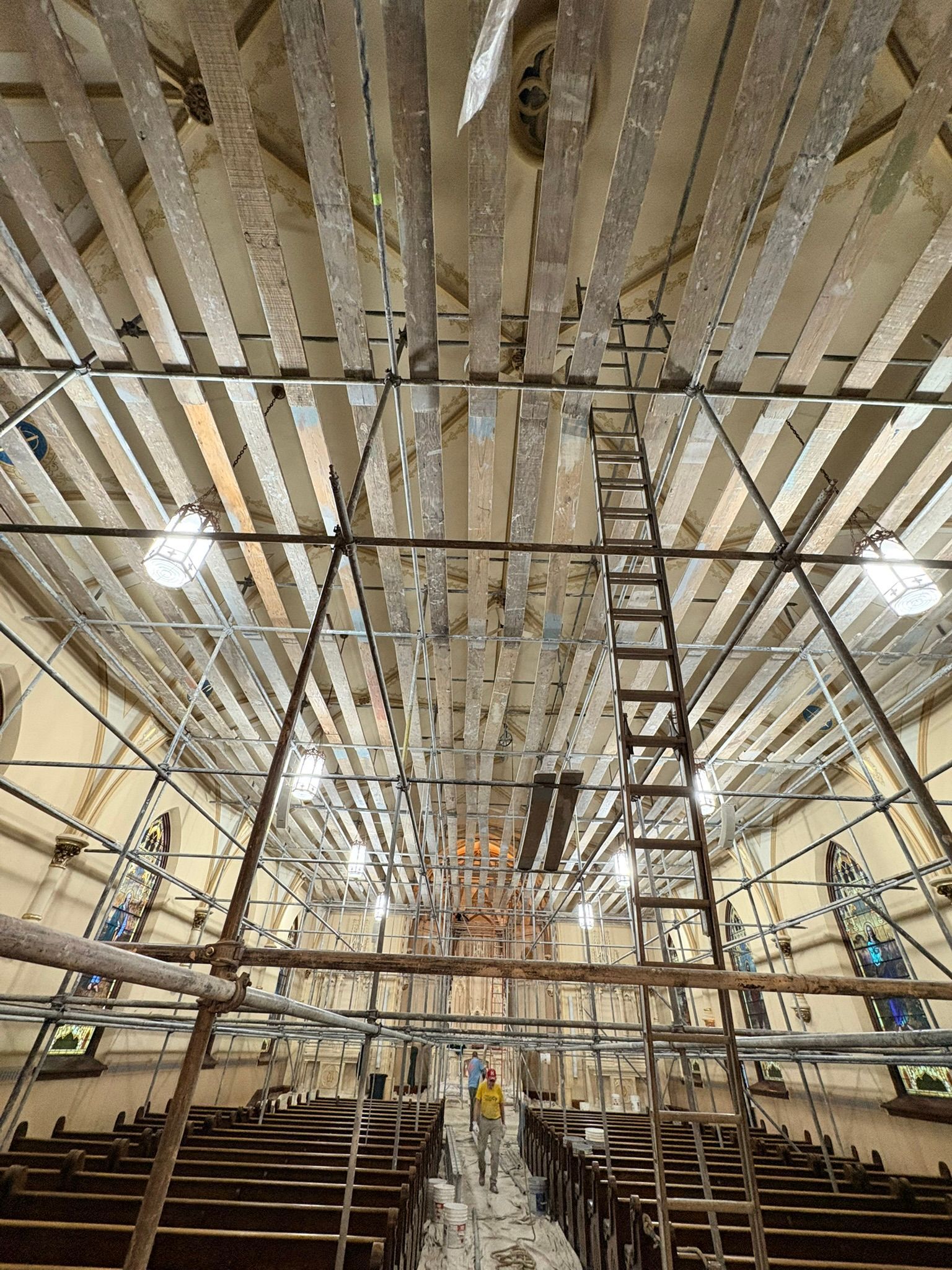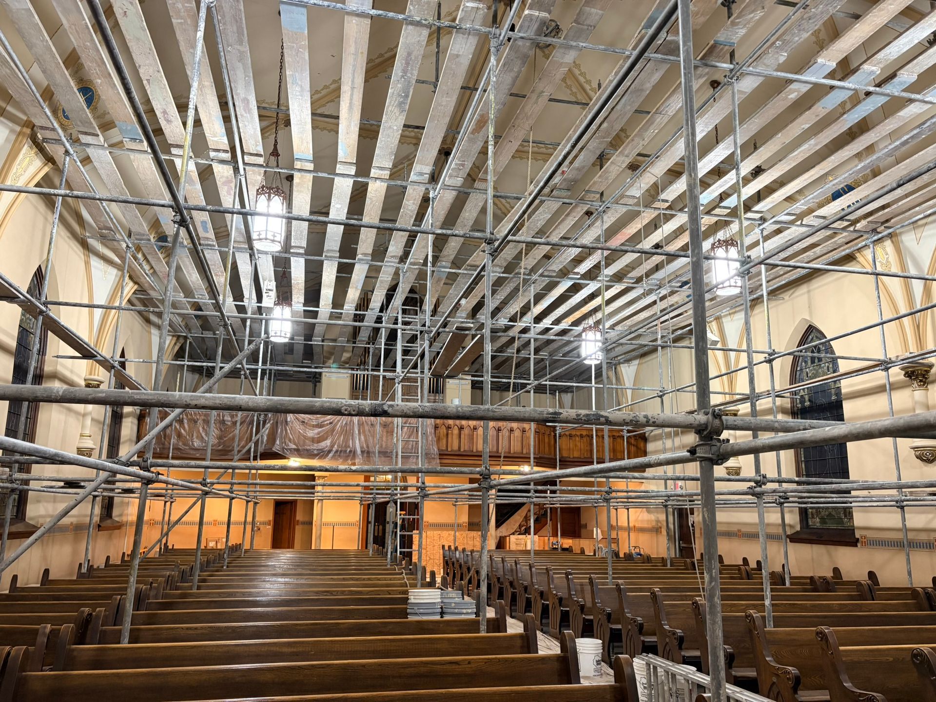 The first church was destroyed by fire on August 15, 1904.