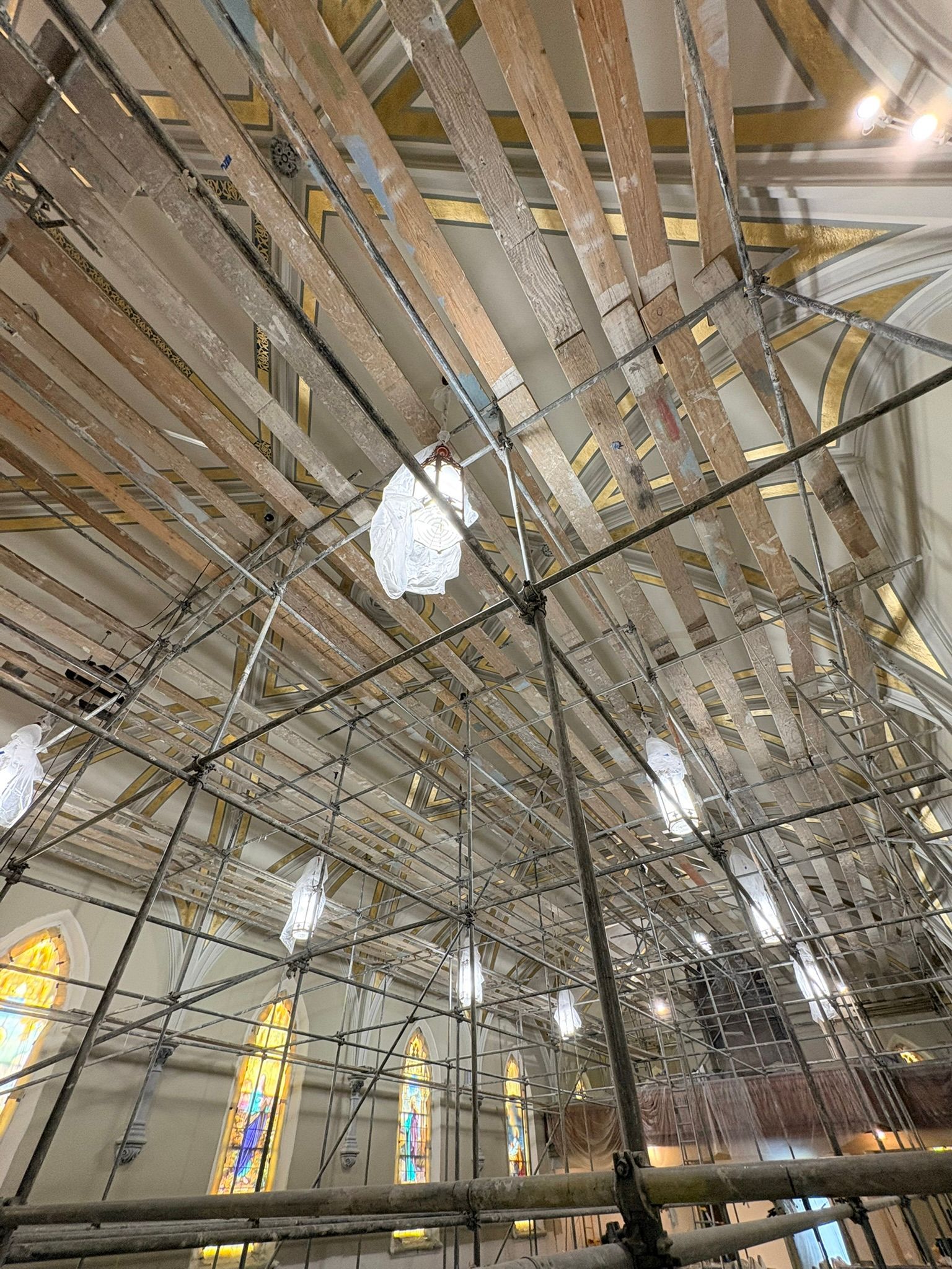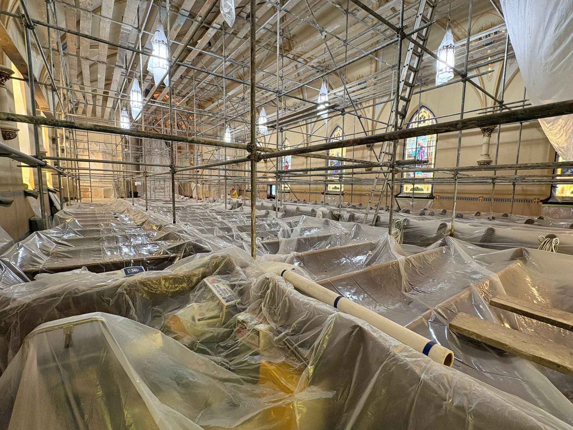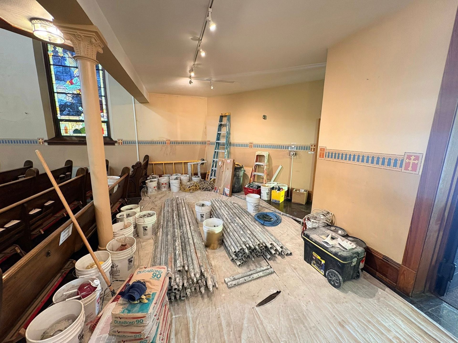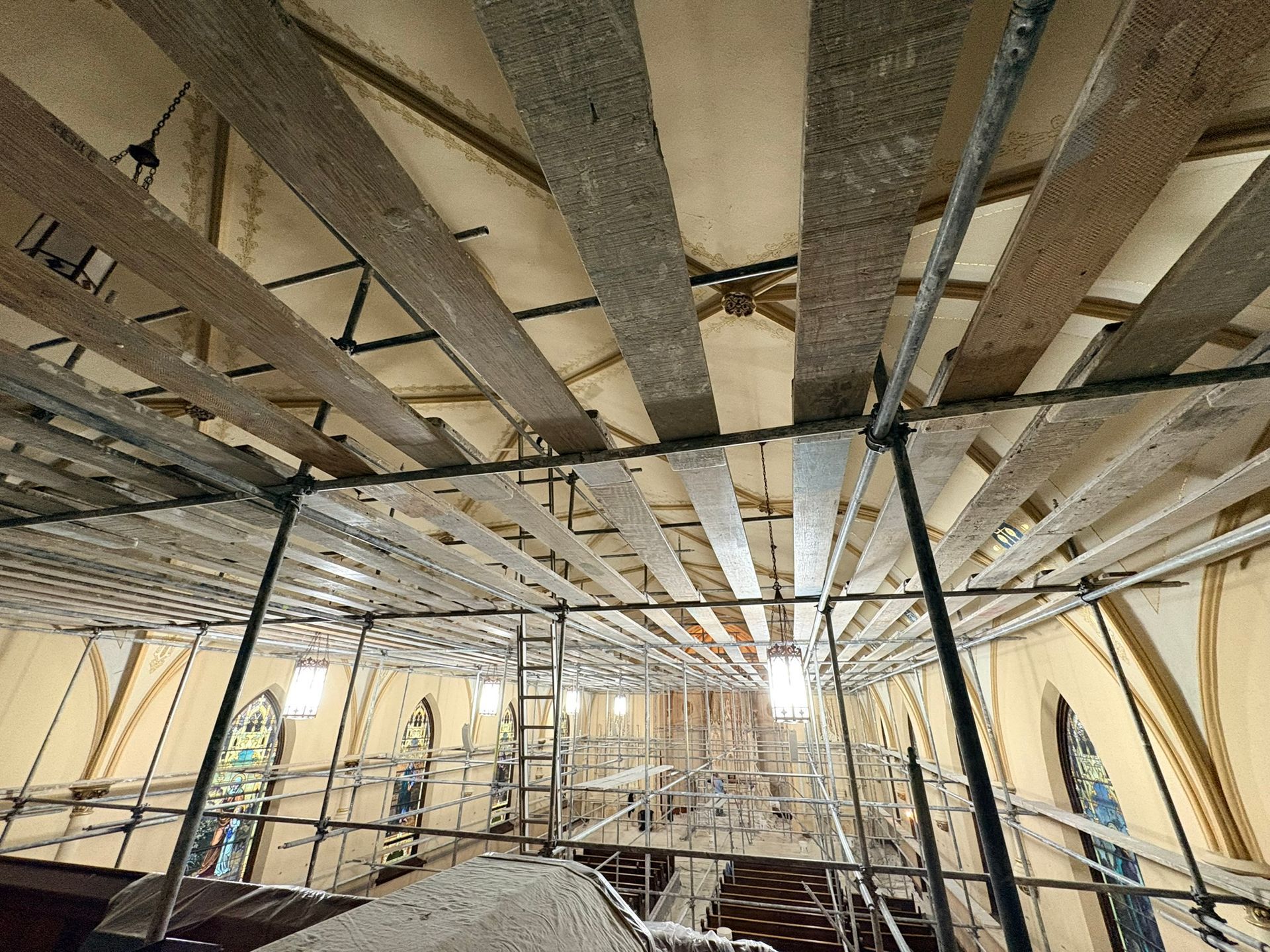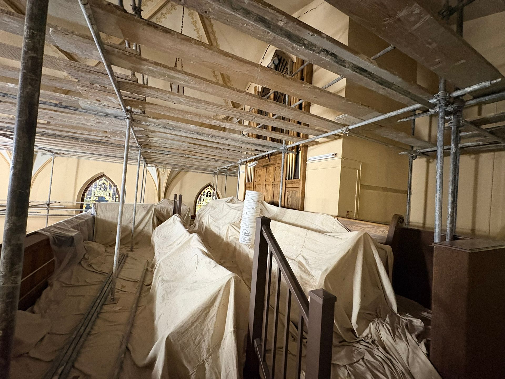 The first church was destroyed by fire on August 15, 1904.