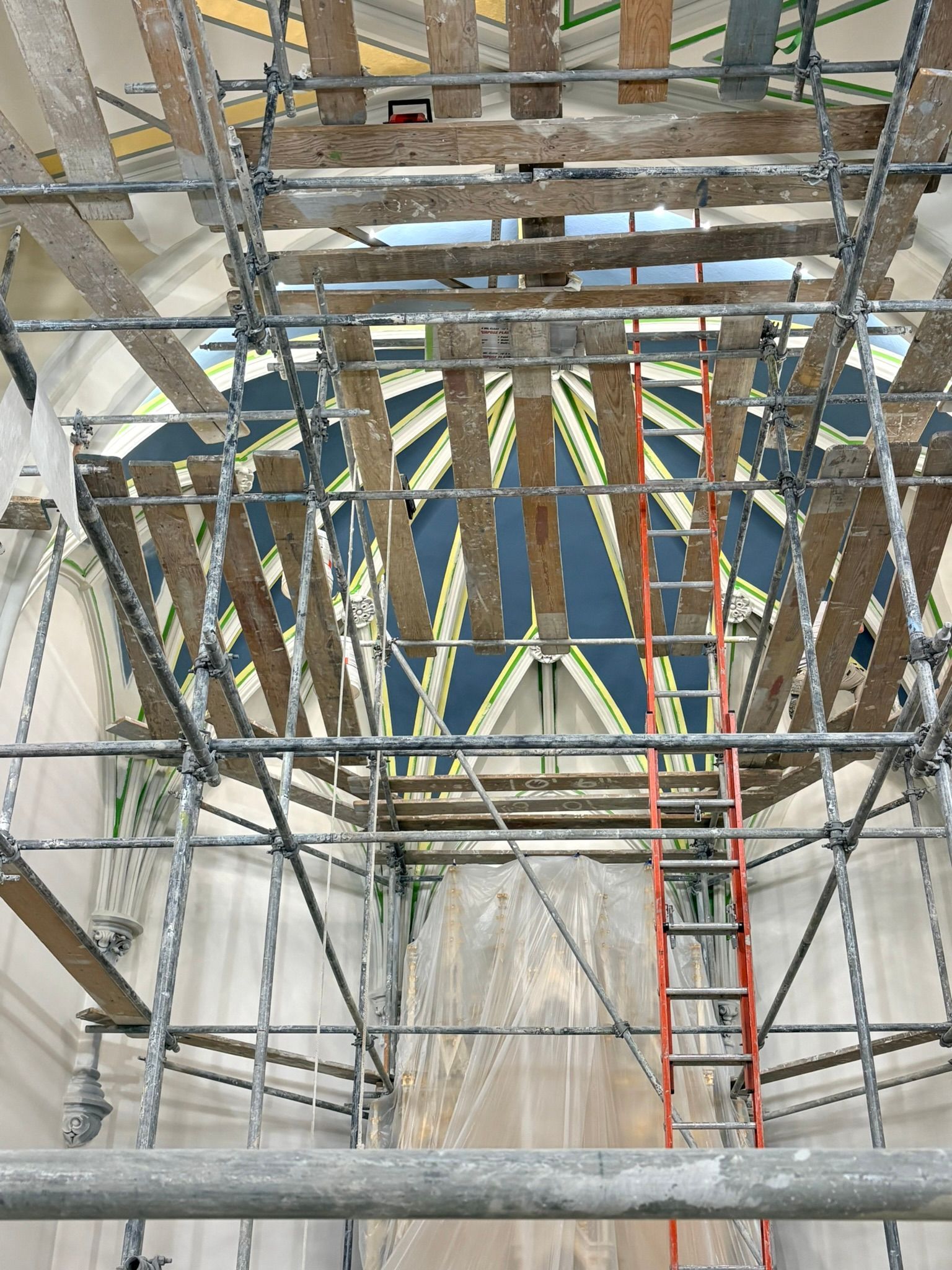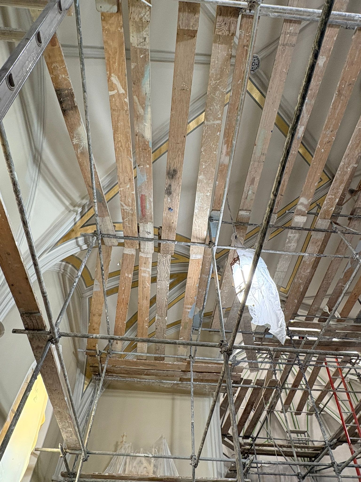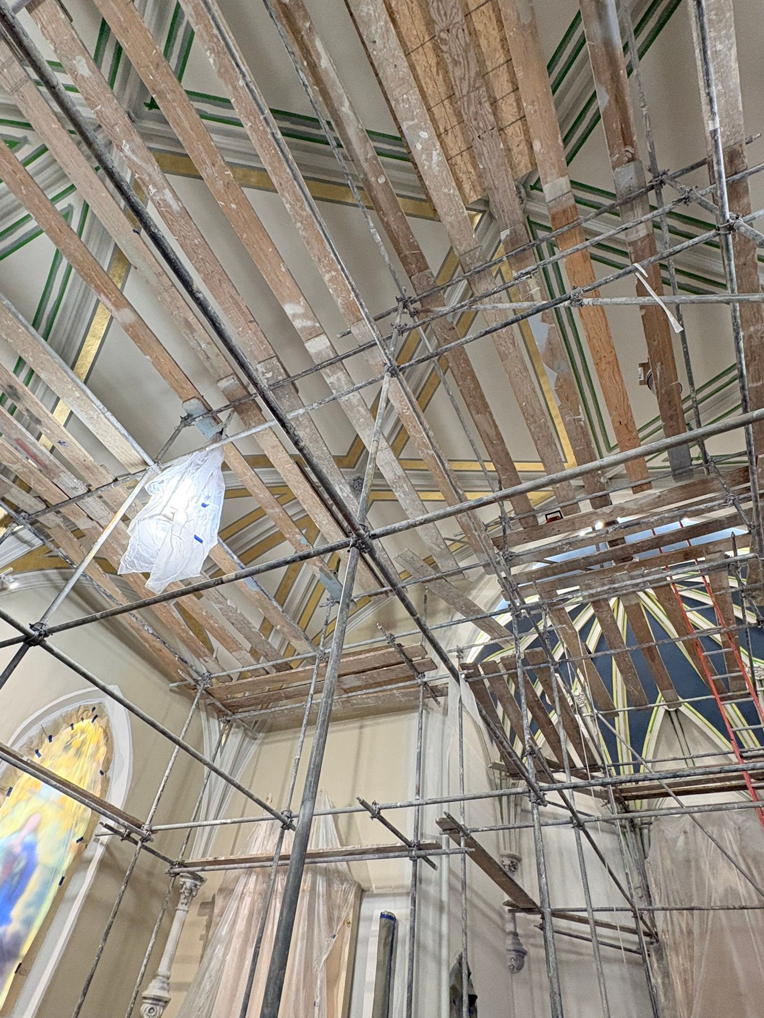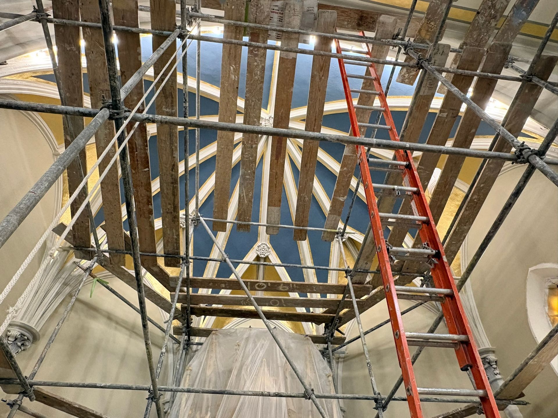 The first church was destroyed by fire on August 15, 1904.