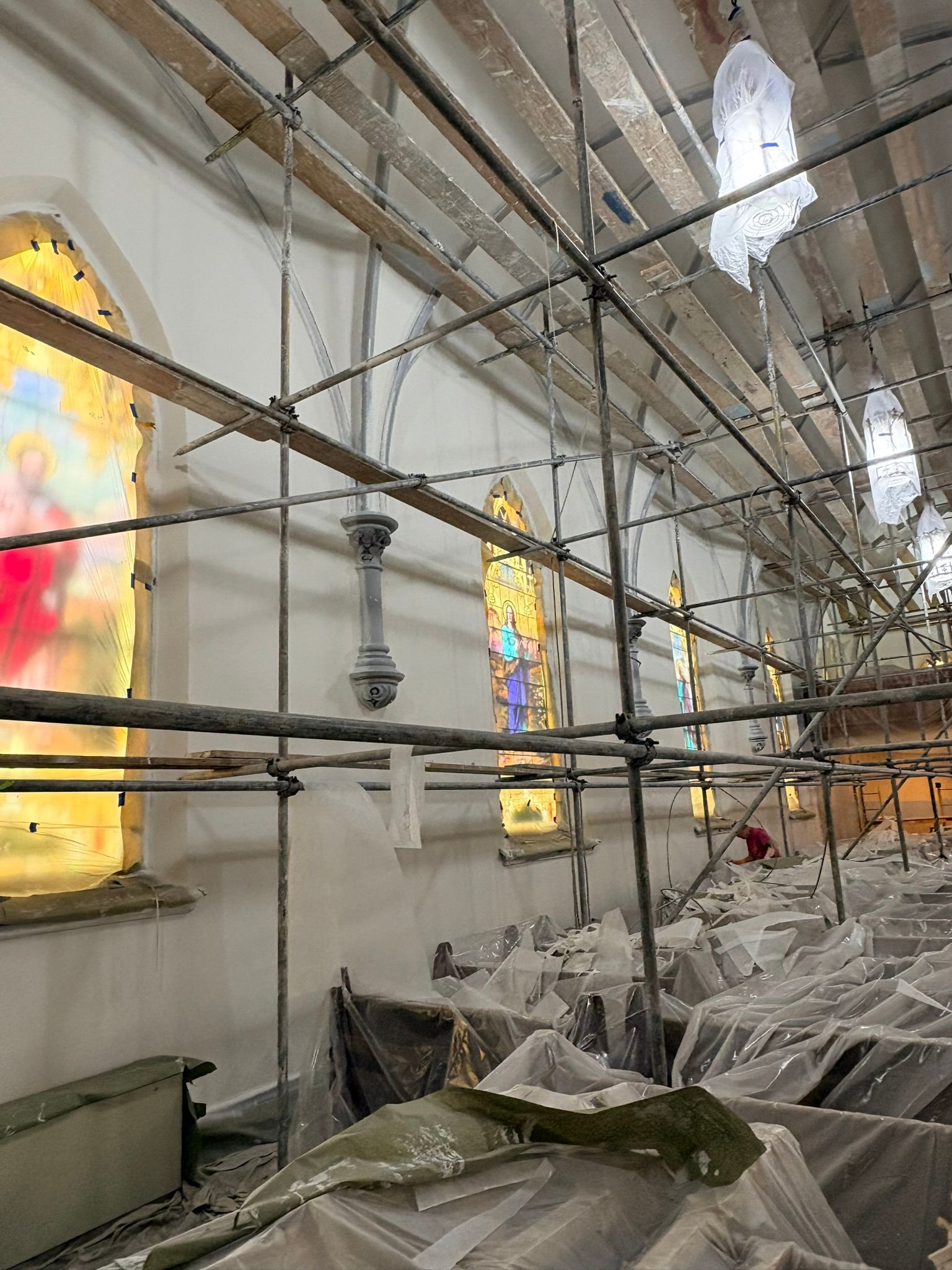The first church was destroyed by fire on August 15, 1904.